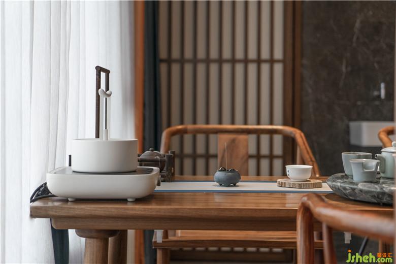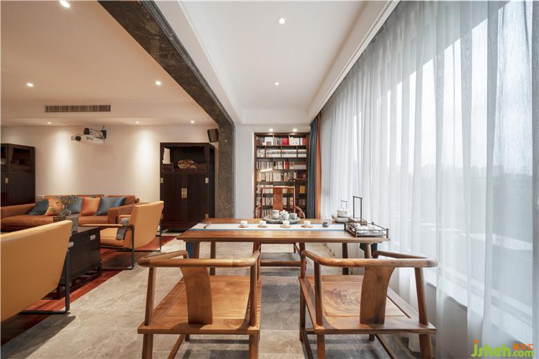 他们之前的老房子里有非常多的书,一套又一套的,非常的精致,业主希望自己家有足够展示书的地方,所以,从餐厅再到泡茶区,两排书柜几乎堆满,或许这样会更呈现出地道的书香味道。