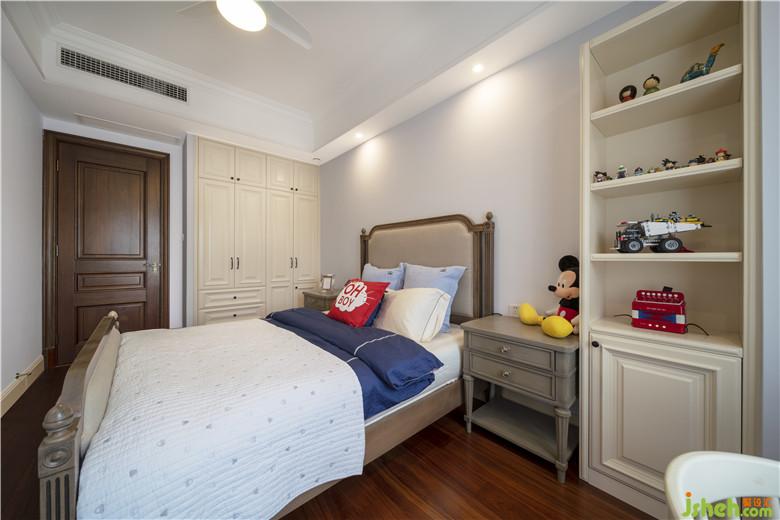 在家具的陈设上,业主也相对来说花了些小心思了,我们选了很多的家具作为参考,逛遍了所有美式的店面,最终从床头柜,台灯,挂画,床上用品包括一个小小的花瓶都选了美克美家的东西。男业主和我一样也算是个音乐发烧友,那主卧的家落里似乎堆满了江先生的全部,午后的阳光下,接通电源,安逸的躺在床上享受这乐符填满整个房间,何等潇洒。在周末的空闲之余,沏上一壶茶,携全家在自家的影院里细细的欣赏一部大片,这生活也算过得惬意悠闲了。