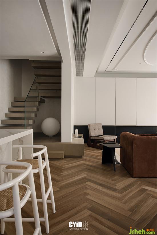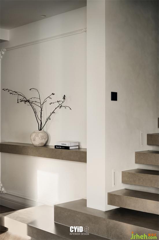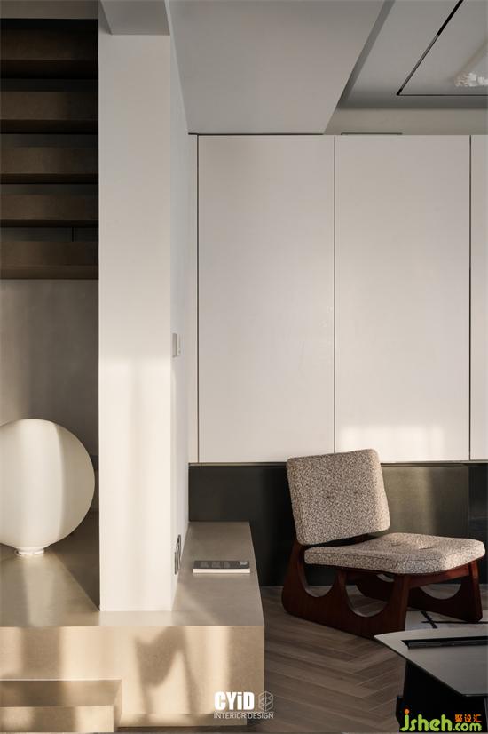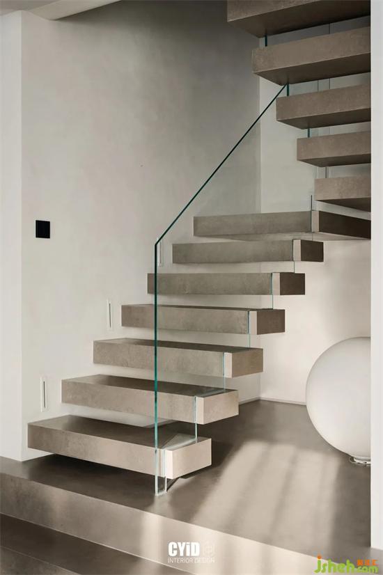 步步阶梯回旋而上,优美流线与步阶的镂空形态层层延伸,现代法式设计映入透明玻璃的光影留痕于步阶的间隙,影影绰绰间更显曼妙韵味。