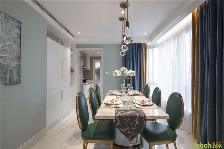 餐厅选择了大理石桌面搭配镶金边餐椅,一个偶然的机会在设计展会上遇见了这款古铜色水晶球吊灯,他与整体空间色温产生了对比,创造动态轻盈的氛围,打造舒适格调的用餐体验。