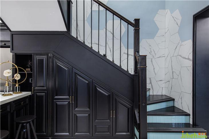 本案是一套平层与一套复试的结合,业主把两套打通成一套使用。原本的楼梯位不动,只是将其行走动向做了调整,踏步面比原始结构更宽了,高度也进行了微调,更符合人体工程学。