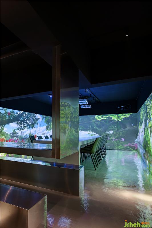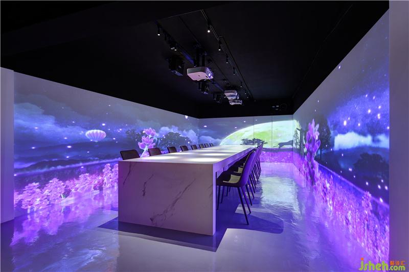 最后一个亮点是其270°液晶投影的设计,2楼由于天生环境封闭,这样的空间让大部分感觉到不舒适。设计师针对这个弊端,大胆采用现代化投影设备进行装饰深圳装修设计,让封闭的空间瞬间成为无限可能,山、湖、海、草原、落叶、飘雪,一切随心而动。