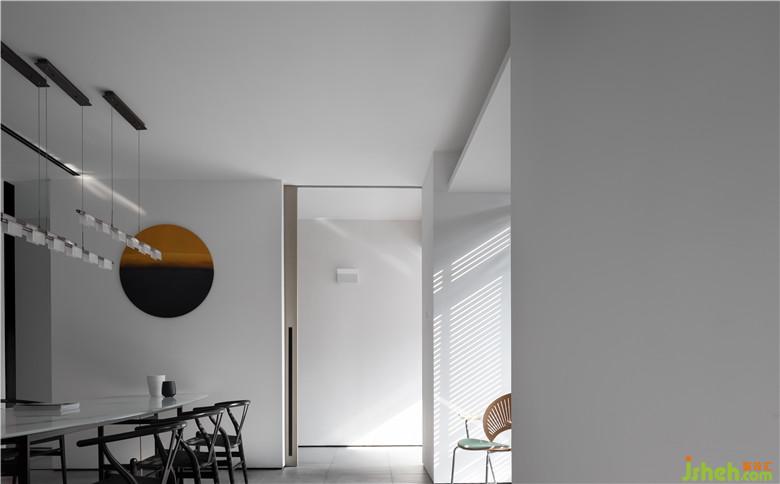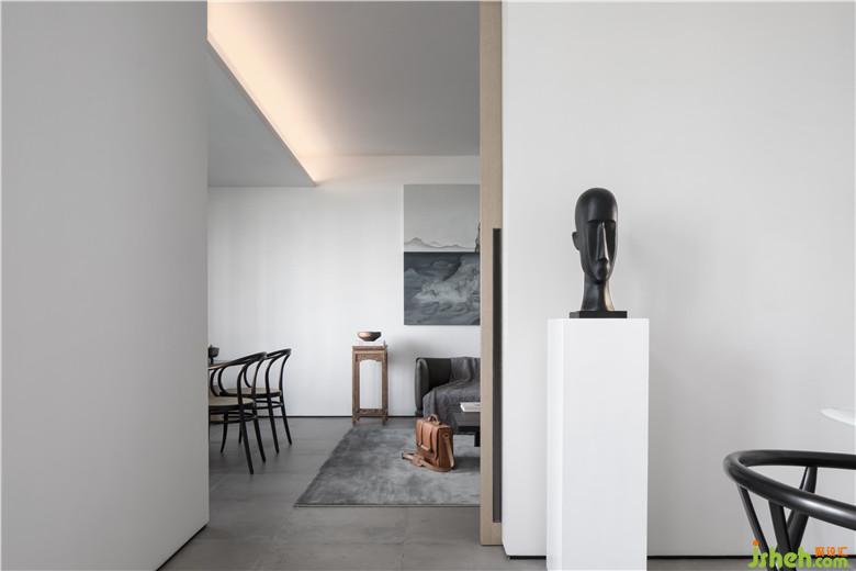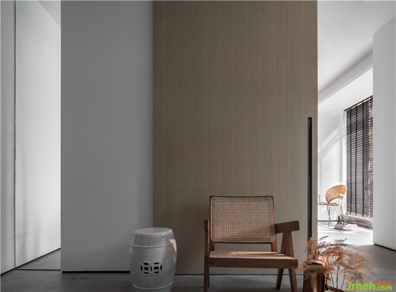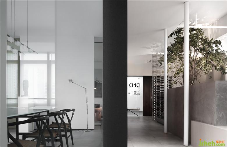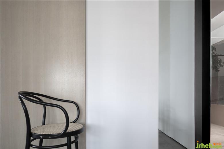 开门见境,玄关造景,以“树”塑造空间安静的氛围,玻璃砖墙后引介光与影。