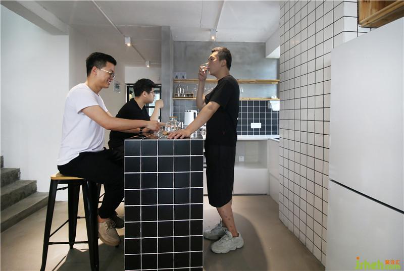 大小不到100平米的空间里充分利用空间关系设置了办公区,水吧区,撸猫区,茶室/会议室,图书阅读区,影音区,健身区等区域,生活与设计两者之间的关系相互交错。营造舒适的办公环境,也与我们年轻的设计团队,设计理念,团队氛围相契合。办公室设计