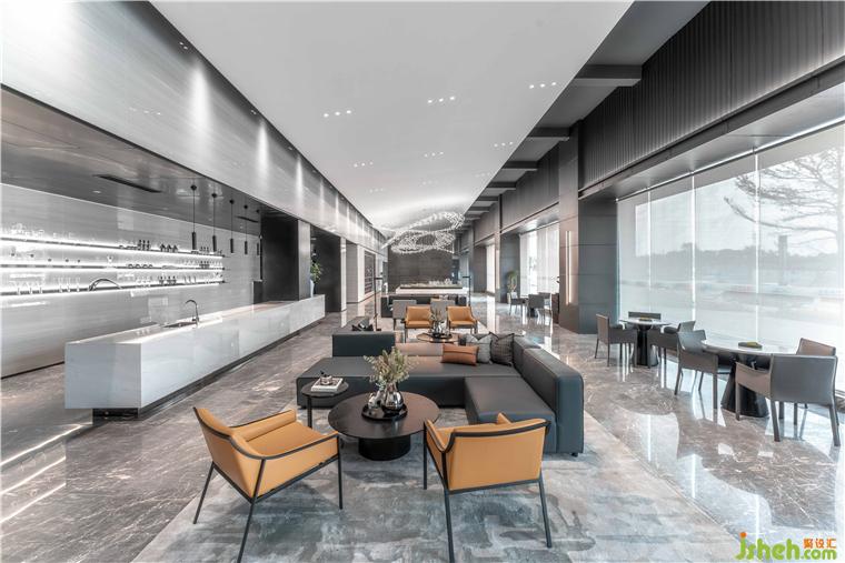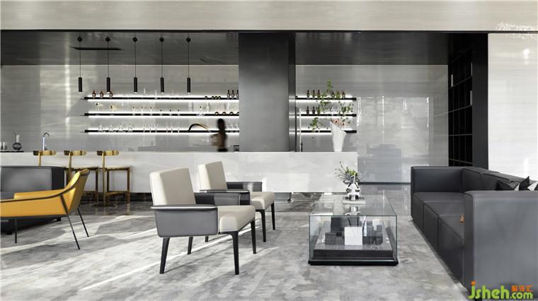 本项目为一个工业厂房的销售中心设计,所以以商务结合工业风的整体氛围来去做,色彩以黑白灰的主色调来作整体,结合佛山顺德均安的功夫小镇的“李小龙”特色用色黄色来作为主题衬托,在立面上大块面干净的手法来勾勒整体,大气而简洁。在软装上用了一些商务而又带点工业味的家具灯具来配合整体气氛,营造出主题而又有格调的工业厂房销售中心,也是给客户展示未来的愿景。