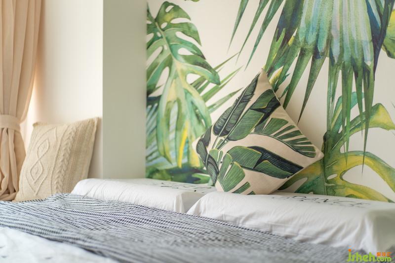龟背竹与春雨带着强烈的生机勃勃的气息,让整个世界彷如置身于热带雨林的世界。柔软的米黄色窗帘与条纹床单为整个空间又增添了一些温暖和宁静。室内设计师