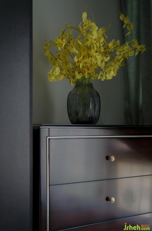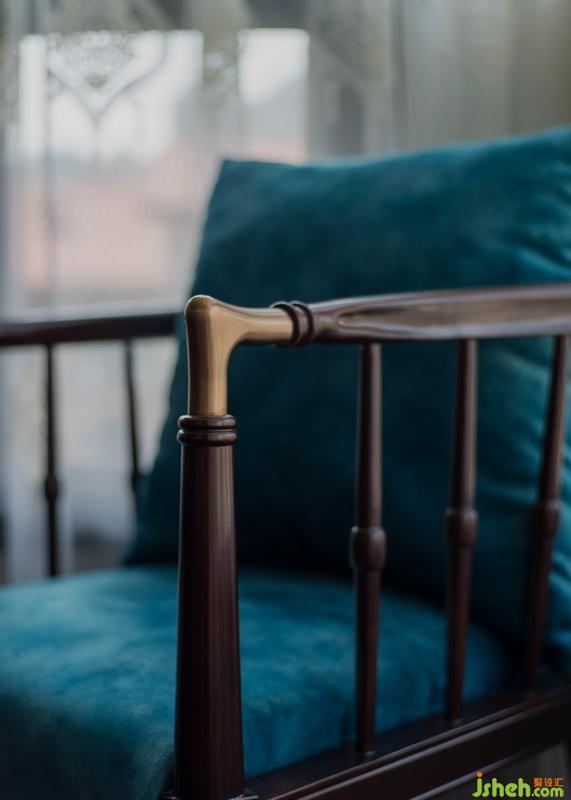 深咖色座椅和墨绿色靠垫的色彩搭配营造出书房沉稳、古朴的安静气息。室内设计师