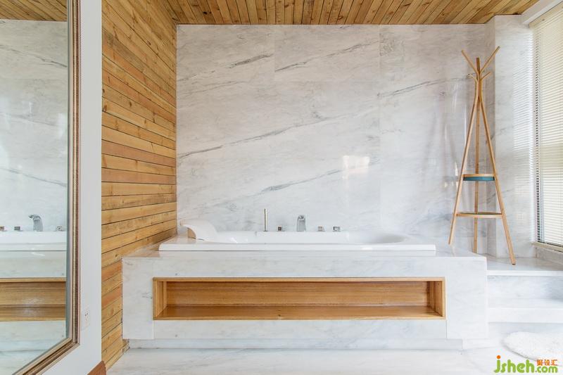卫生间以原木的暖色调为主,主打一个安静放松的浴室环境,木质的材质的装饰让人防若置身于北欧桑拿室的错觉。室内设计师