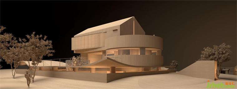 酒庄设计功能规划上充分考虑运营需求,划分餐饮、陈列售卖、酒窖等展陈空间。一层及二层采用小体量坡顶结构体块,贴合传统乡村建筑基本形态。一层功能作为水吧操作区及酒产品售卖区。二层作为私密空间的品酒室与餐厅包间使用。室内餐饮区利用弧形曲线跟空间融合,增添了灵动与自由生长之意,巧妙完成了动线规划。