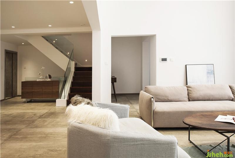业主海外归来,工作繁忙。二人注重生活,注重品质,本案设计风格定义为现代极简,无复杂装饰,追求实用,主要强调空间的整体性,风格的统一性。提倡自然简洁和理性的规则,比例均匀、材料搭配、收口方式、通过虚实互换的空间形象,取得局部与整个空间的和谐,完整。“隐于咫尺喧嚣,闲逸潇洒”设计师便将这份寄托赋予这室内空间中,希望二人在繁忙的工作可以拥有独自思考的空间,于这静谧的空间中享受片刻安宁。室内墙面均采用白色艺术漆健康环保,地面选用仿古地砖突出质感,楼梯及卧室选用实木地板触感温润利于休息,玻璃围栏打造通透视感。卫浴洁具均来自品牌保证品质。整体家具以木质亚麻为主营造舒适自然之感