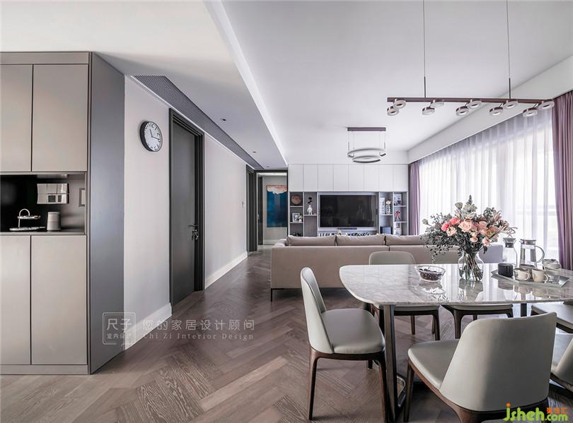 在客餐厨主空间的布局上,我们特意淡化了边界感,让家人间有更多的互动。