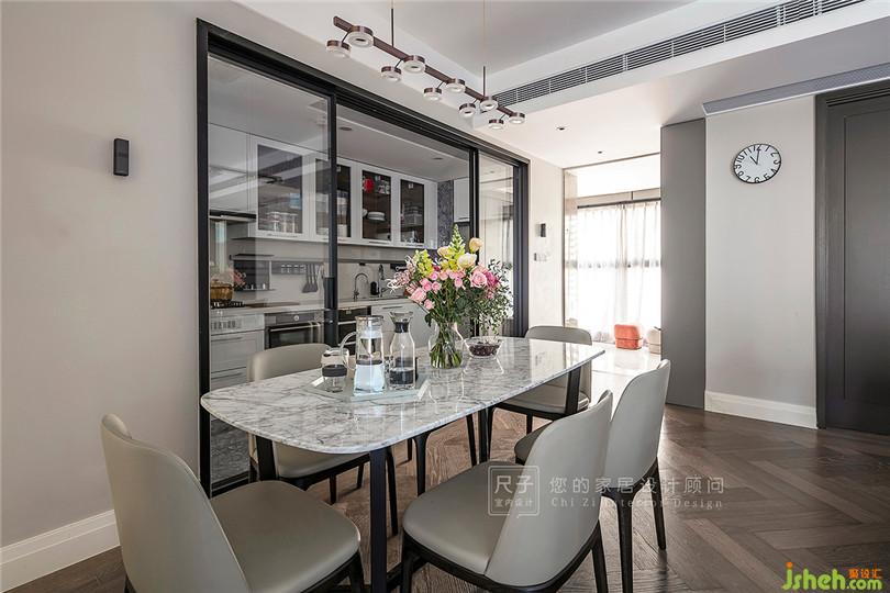 半开放式的设计既实现了餐厨的完美分割,玻璃的材质又让空间整体更为通透。