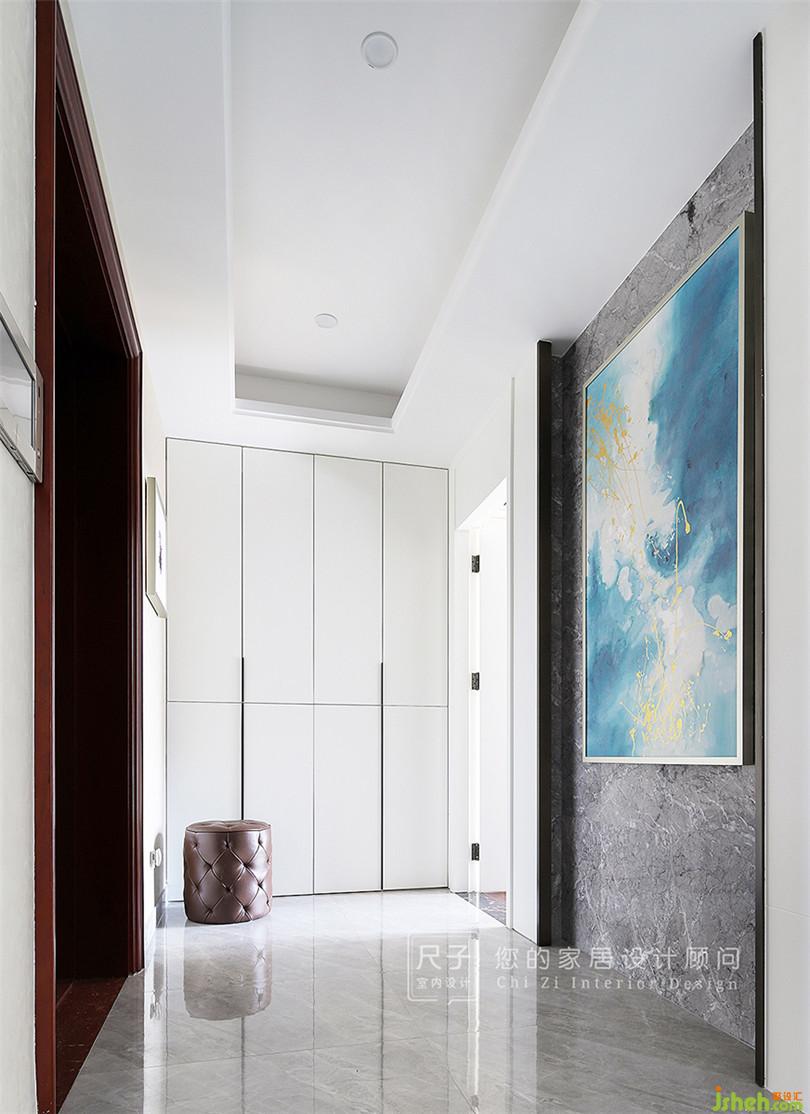 入户玄关是连接室内外空间的渠道,是来客对这个家的第一印象。在满足其美观度的同时,也要考虑实用功能,因此做了到顶的整面鞋柜,暗拉手的设计也保证了空间的整洁。