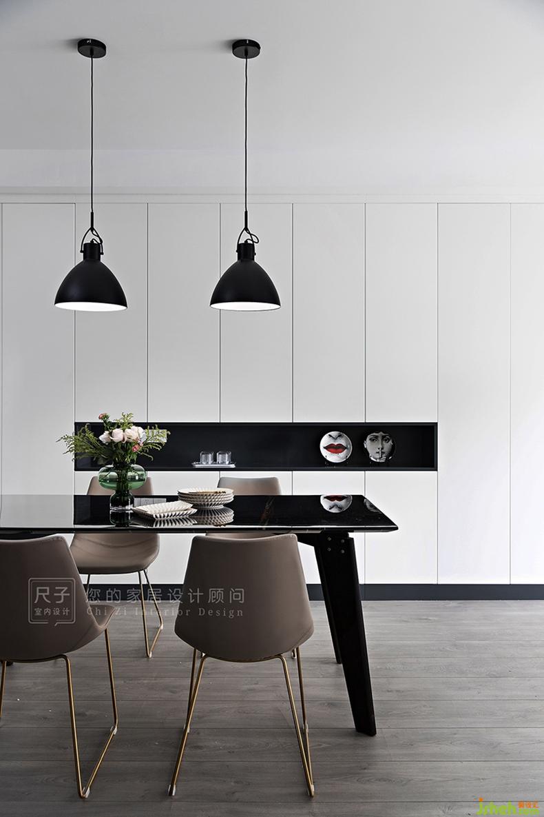 纯净黑的餐桌搭配咖色的皮质座椅,再加上金色的点缀,使得空间充满摩登时尚的气息。