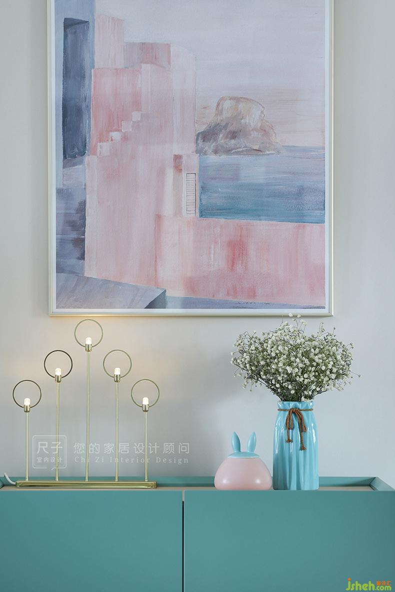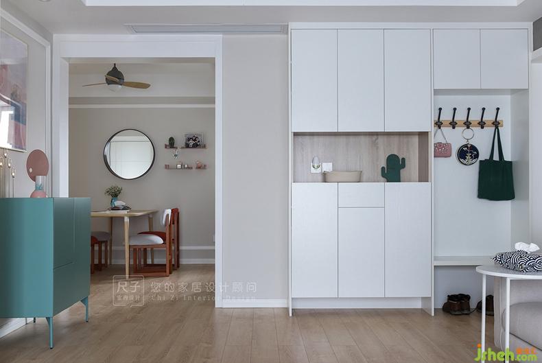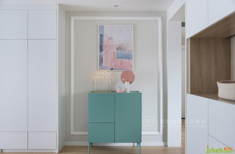 玄关是我们对家的第一印象。豆绿与千禧粉,清清爽爽的色调,让空间充满鲜活的气息。深圳设计公司