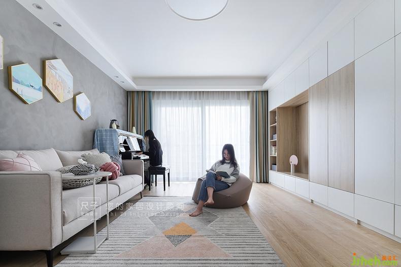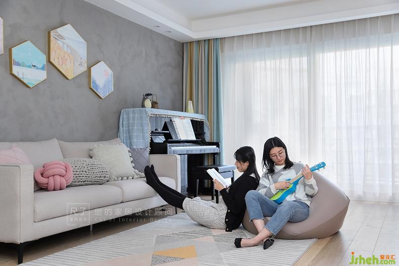 本案例以F小姐喜爱的马卡龙色系为主色,通过对色彩的巧妙把控,以低饱和度的对比色碰撞,还原F小姐心中:诗意、梦幻、温暖的家。