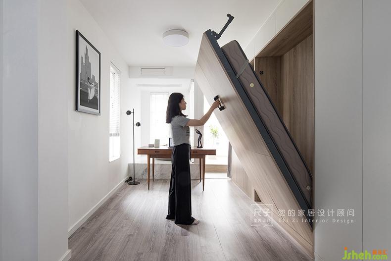 透光折叠门打造通透空间感,易移动的书桌椅以及隐形壁床让书房承担起客卧的功能。