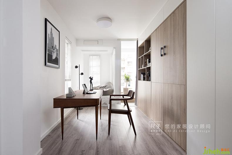 入户右转便是这个家的书房空间,关上门,屋内是一个静谧的独立空间,打开门,书房又能与主空间相连接。