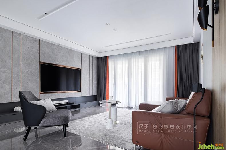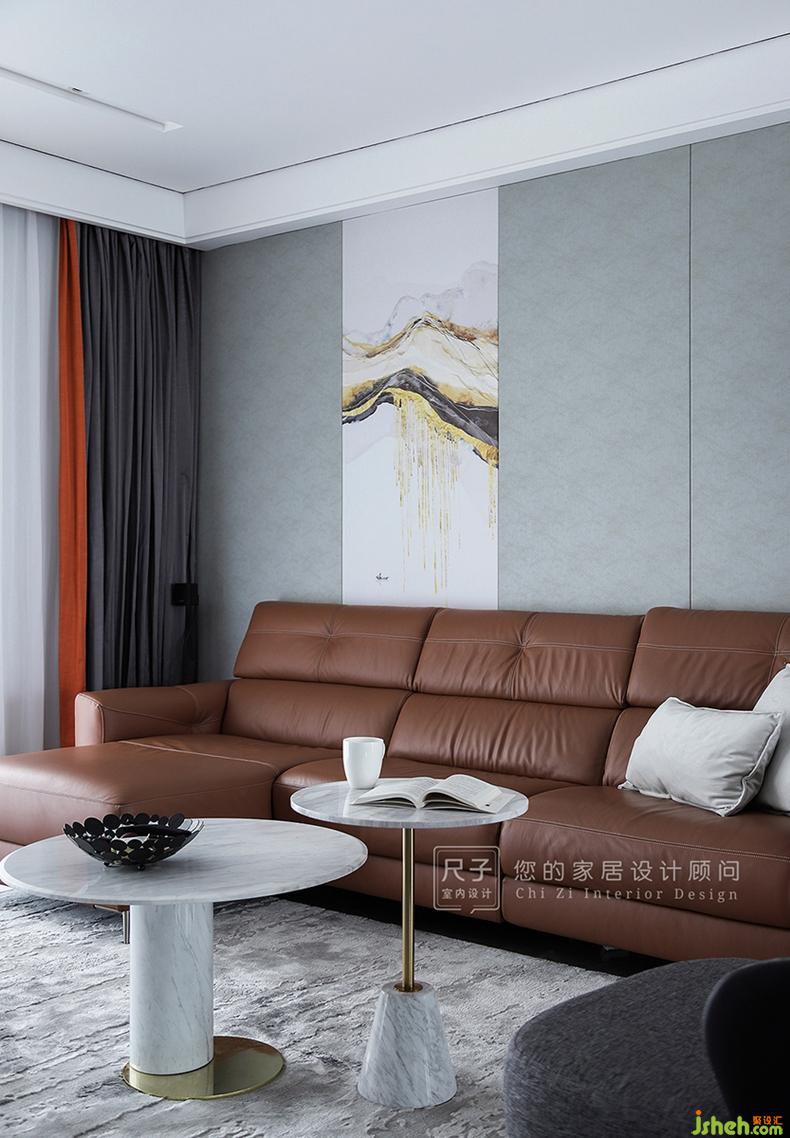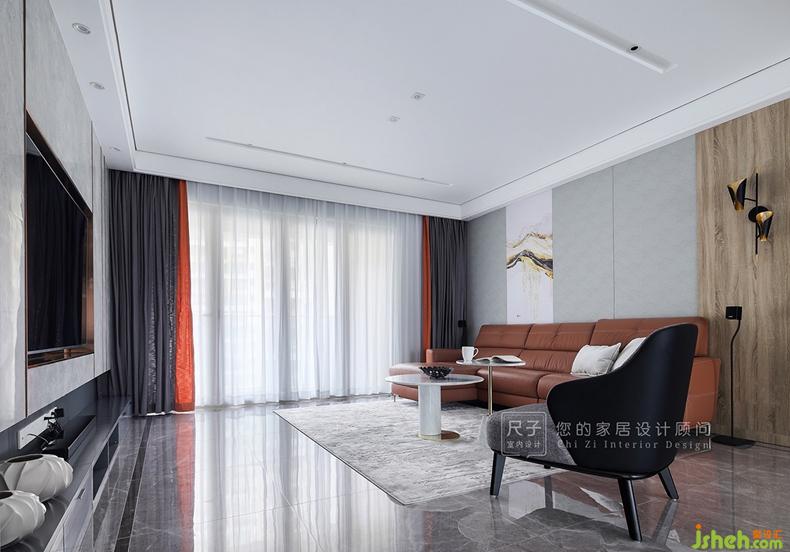 整个空间以高级灰为主,辅以惬意的加州橙以及温暖的木色,让整个空间色彩丰富温馨,更显精致。