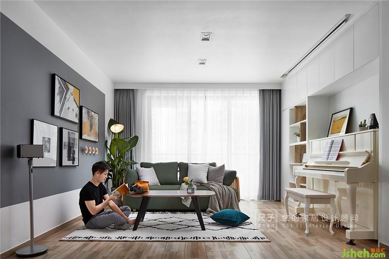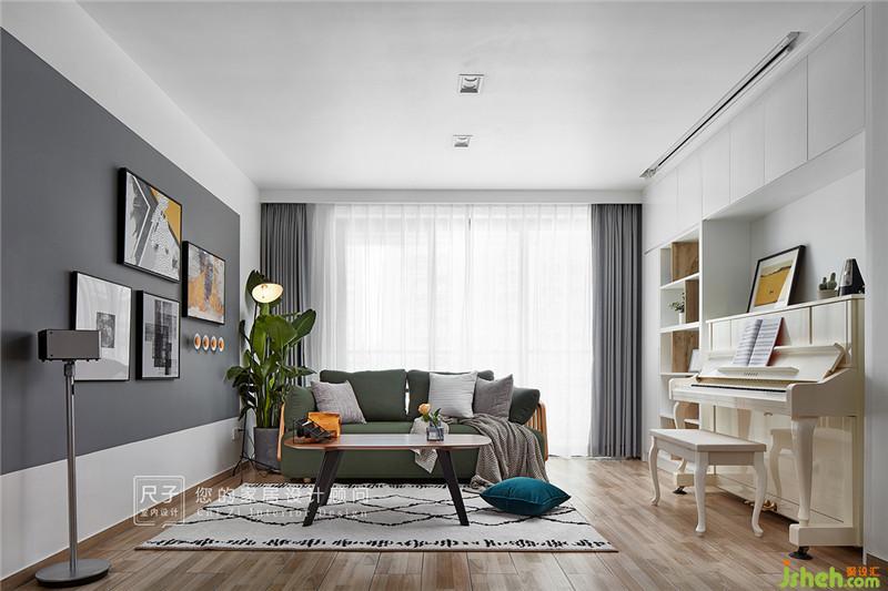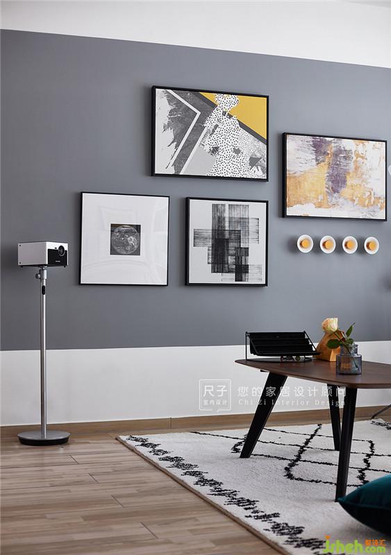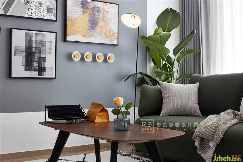 墙面局部分色的设计与大小不一的挂画搭配,让客厅氛围满满。室内设计师