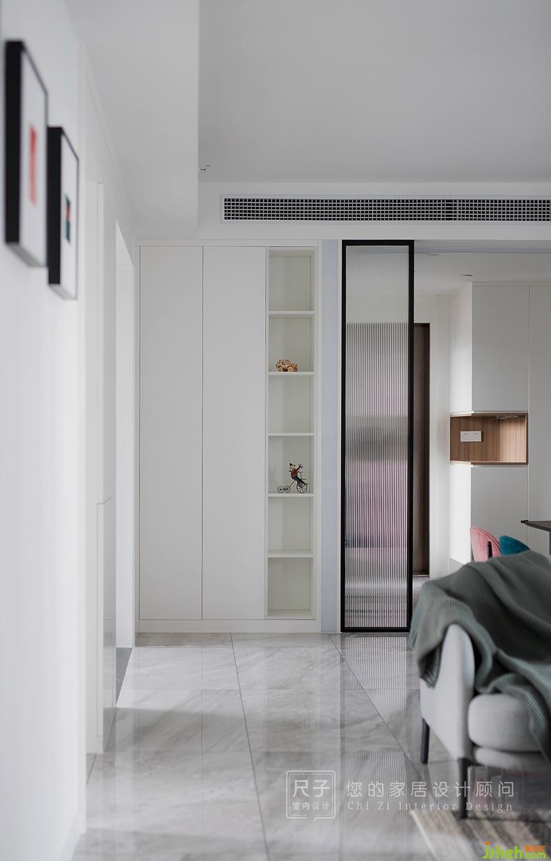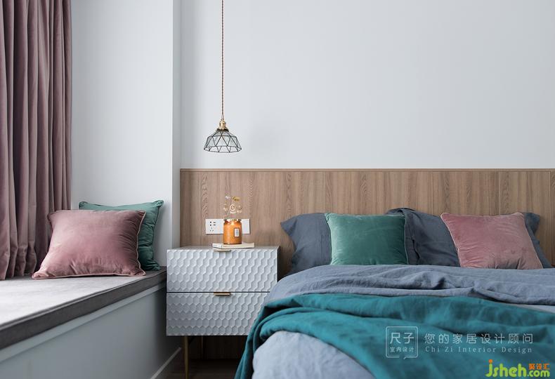 主卧的色彩是从客餐厅流淌而来,保持着极高的连贯性;灰蓝与脏粉在木色的调剂下,不甜腻也不冷硬,却带着让人放松下来的魔力。