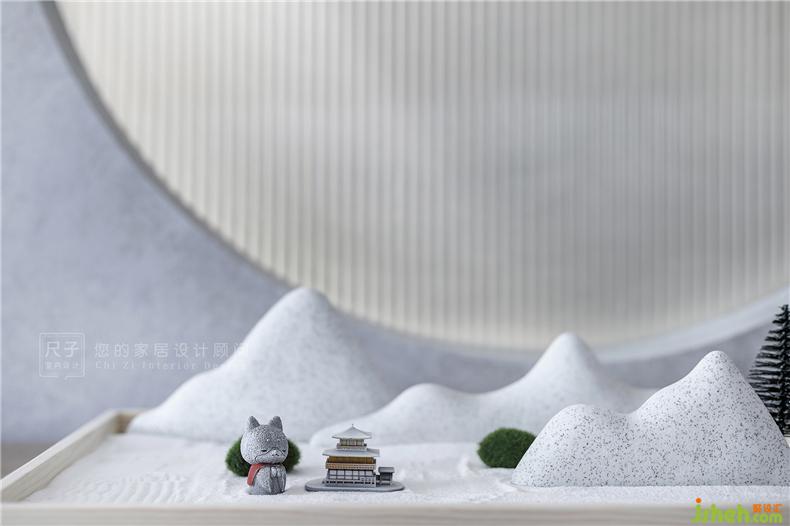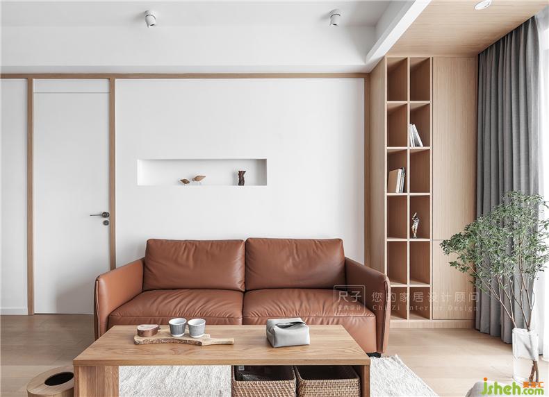 不同于中国传统的对称思维,非对称性设计是日式美学的一大特征,室内设计师我们在背景墙面的设计中运用这一手法,以简单的线条以及不同的材质,打造虚实相间之景。