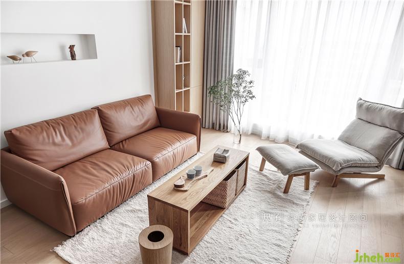 客厅设计追求一种淡雅深邃的意味,化繁为简,摈弃过多的修饰,大面积原木色与白色结合,搭配清新自然、线条简洁的家具,加上棕橙色点缀一二,达到一个舒适的居住状态。
