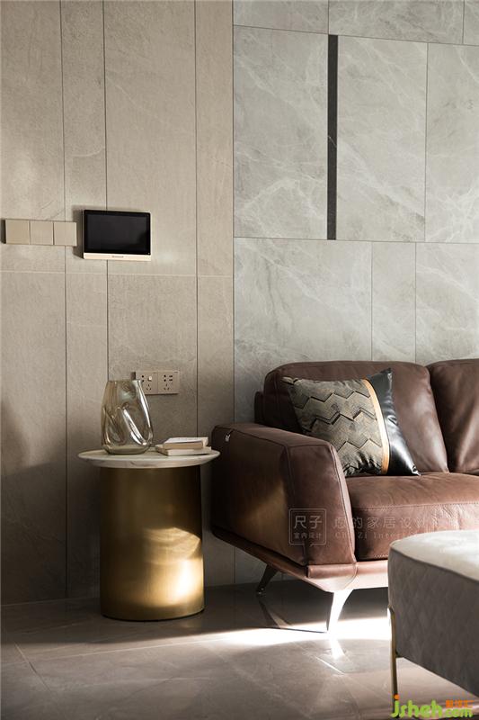 走进客厅,沙发背景墙是块面感十足的瓷砖组合体,墙面线条传达出空间的秩序感;两种色泽的瓷砖碰撞,加之沙发地毯的搭配,硬装与软装揉合,以一种简练的手法来平衡空间冷暖关系。