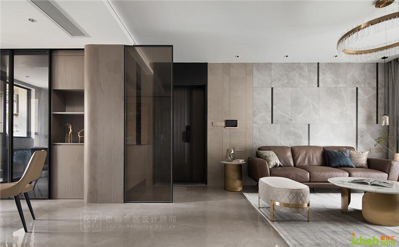 ①入户巧用隔断:以一扇艺术玻璃屏风,隔断玄关与客餐厅,避免入户门正对主卧门,缓解风水上的尴尬