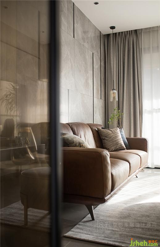 黑白灰的递进,玻璃、皮质布艺的穿插,不同材质互相糅合,平衡了墙面固有的克制与简洁;细节之处更显精致。