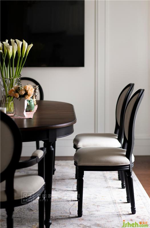餐厅与厨房通过半通透的推拉门打通,除了在视觉上显得开阔大方,更是促进了家人、朋友间的交流联系。