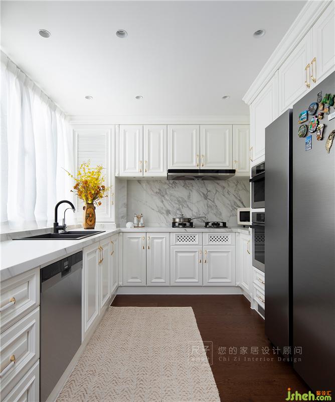 纯净的白色柜体与深色地板搭配,既稳重又有清澈之感。