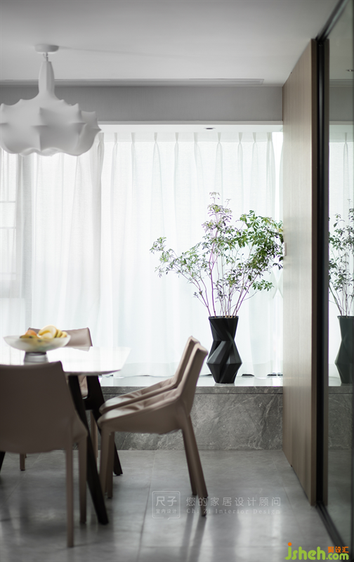 靠窗处也嵌入镜面来加强空间延伸感,让餐厅区域不显压抑。