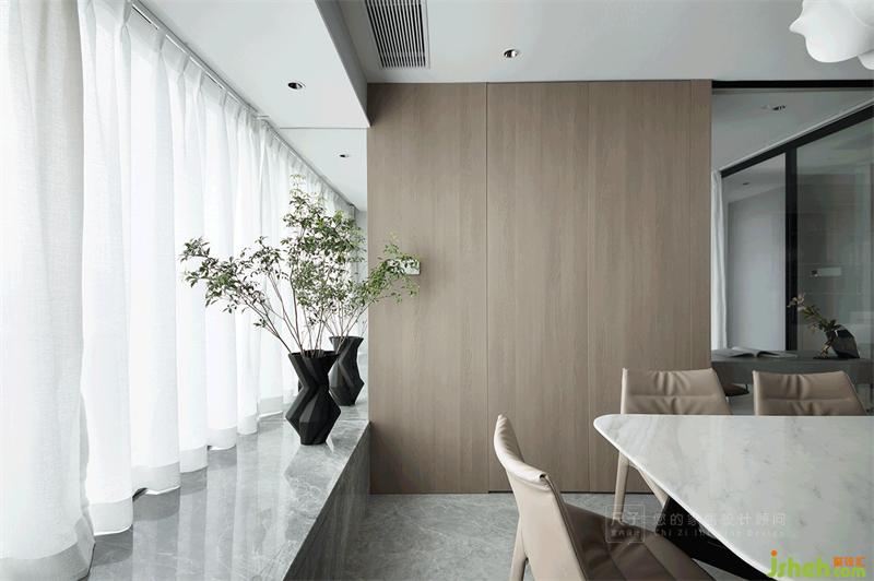 玻璃隔断的深圳家居设计实现了空间的相互连贯,当然只需拉上纱帘,这里又可以是独立安静的工作区。