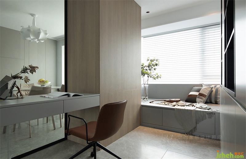 原本的推拉门封窗,深圳家居设计成独立学习区,衔接侧面的一整排储物柜,收纳功能强大。