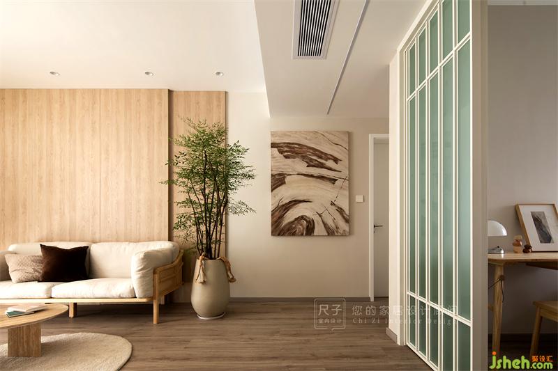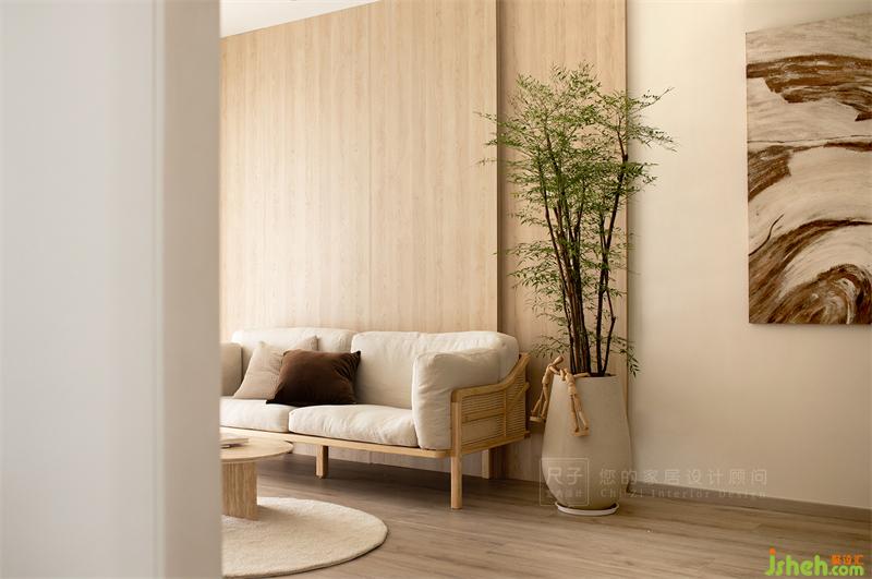 客厅色调清浅而纯粹,原木色的运用给整个空间带来温润的触感。