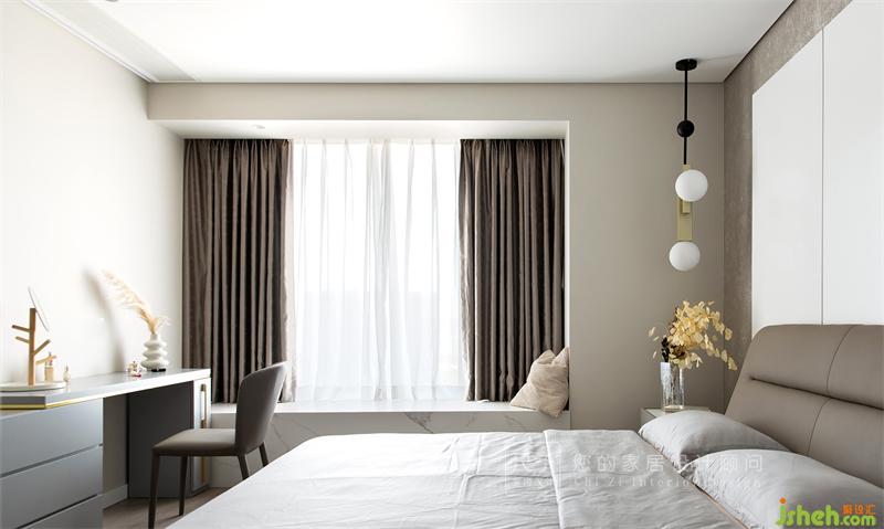 主卧的打造以静谧舒适为主,让居住者沉浸在米咖色调所带来的温暖氛围中。