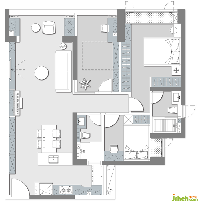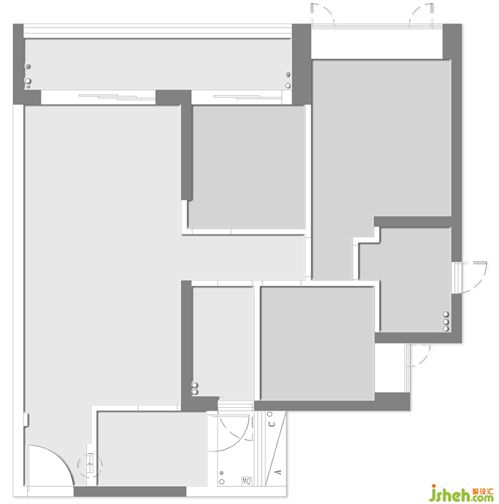 两个阳台均封入室内,扩大客厅、书房以及厨房的使用面积