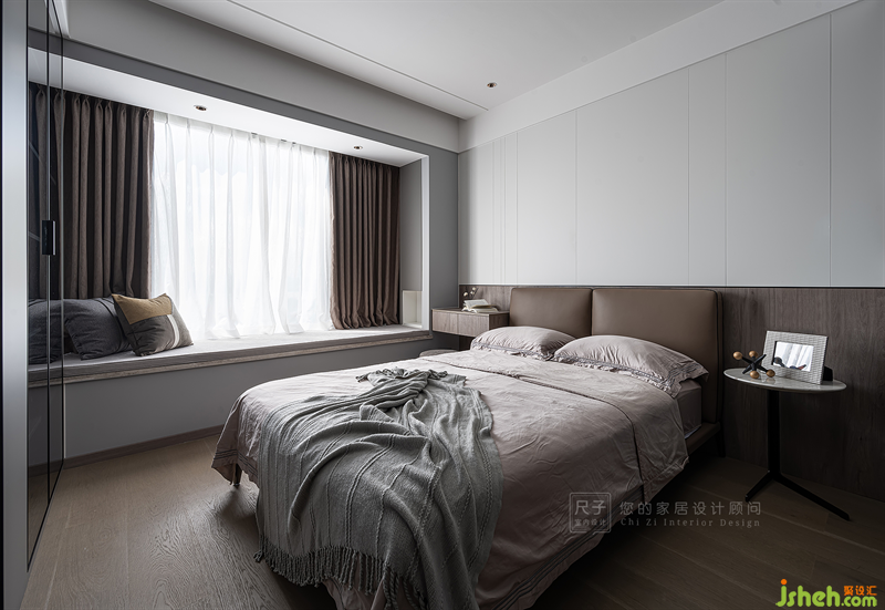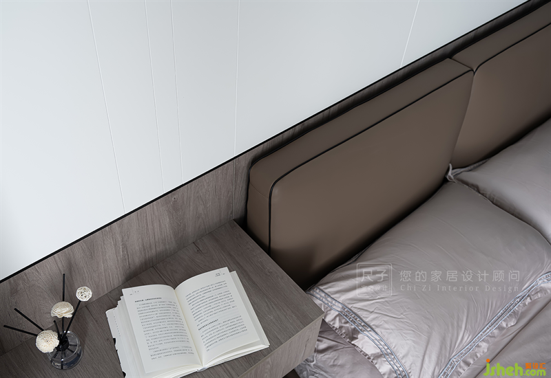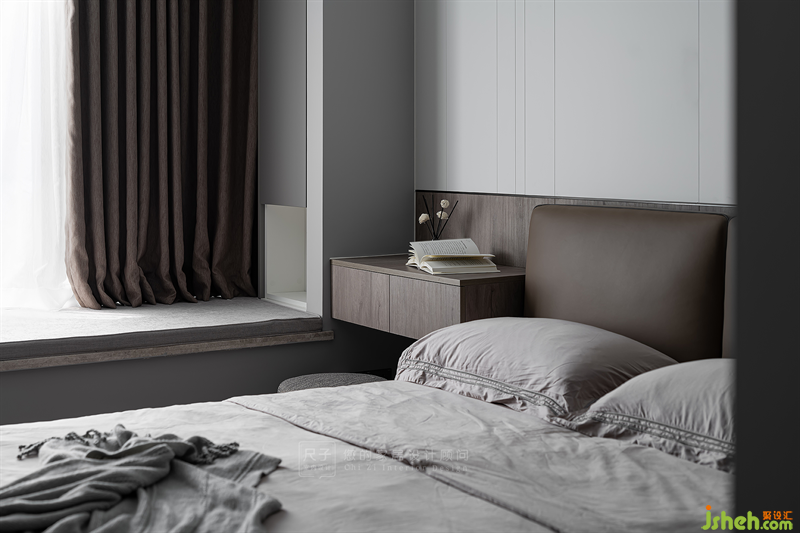 主卧延续了整体的风格,以线条和不同材质的拼接勾勒出宁静雅致的氛围。