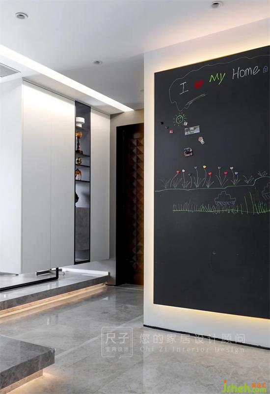 角落里的黑板墙,书写着家长里短;一本正经地站在那的小熊,似乎在亲切地说,欢迎回家。