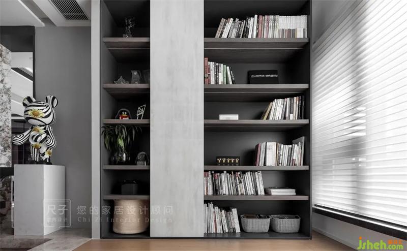 书房落在抬高的地台上,清透的香格里拉帘将一缕缕光线带到室内,地面铺上脚感舒适的木地板,随时随地席地而坐,便可享受安静的阅读时光。