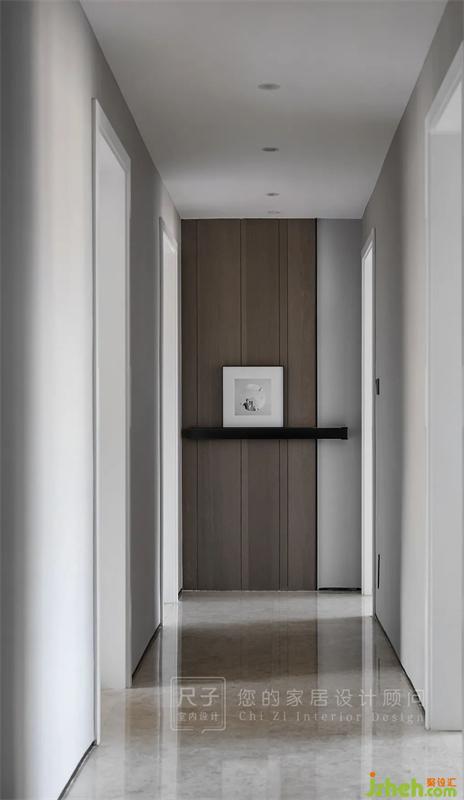 将原有房门换成了干净的白色静音门,过道仿佛都明亮了起来。过道端头设置了一面灵活的装饰墙,家中小孩的画作,朋友赠品,可以不定期更换,让家中景色常新。