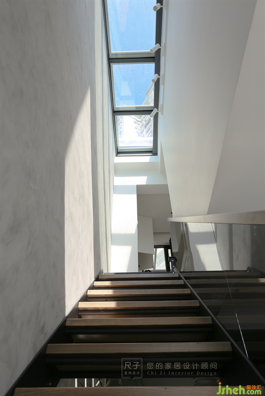 儿童房房顶以及楼梯顶部都做了铝合金天窗,顶楼复式设计以增加空间采光,明亮利落的百叶帘,调节光影,控制着空间的情绪。