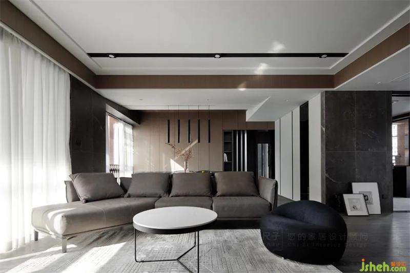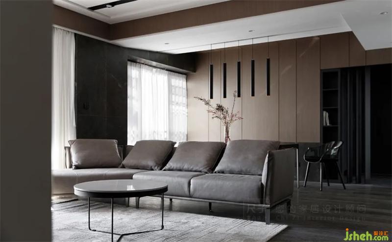 客厅的色彩以黑白灰为主,将有着深浅度差异的灰色,以及不同材质的纹理感利用起来,碰撞出丰富的层次美;再借助木色的高包容度,营造出舒适温馨而不失格调的氛围。