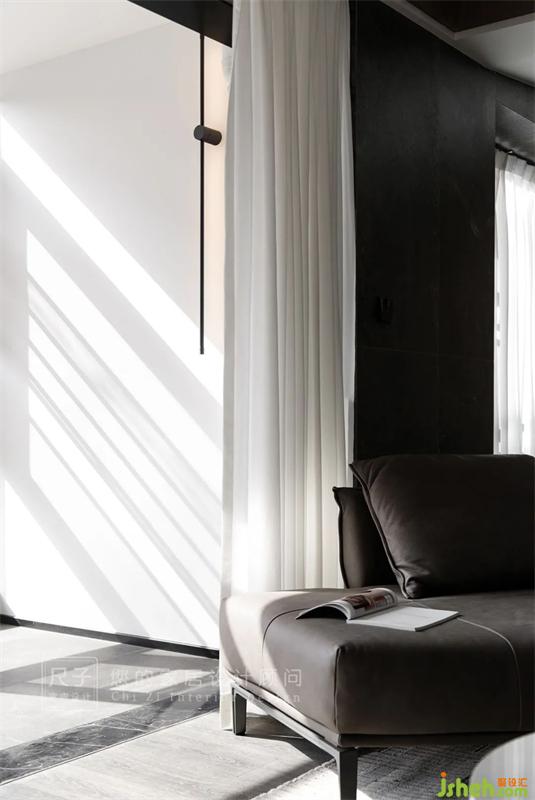 在公共空间的打造上,我们更偏向开放联结的概念,以沙发充当重要的软隔断,界定出明确的功能区域,材质与配色的一致性,又让客厅与餐厅在视觉上形成统一。