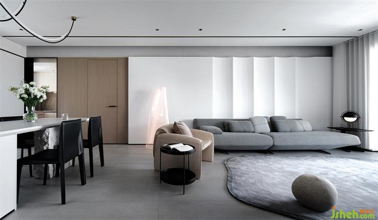 强调空间的互动交流属性,是屋主和设计师的共同认知。深圳家装设计于是客餐厅的天花与地面以巧妙的视觉连接,打造出适合对话的公共空间。