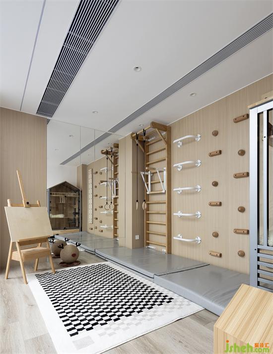 一边是小孩的健身区以及猫屋,孩子们可以在此尽情攀爬、健身。