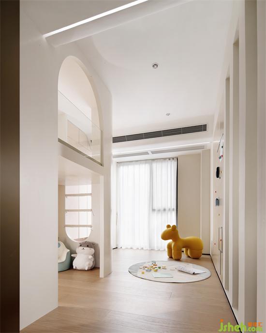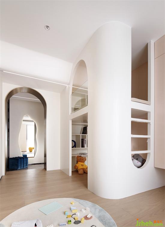 作为小朋友平时娱乐玩耍、阅读的主要场所,深圳家装设计活动区通过弧形、柔和的线条来营造,“小城堡”增添了趣味性和互动性。