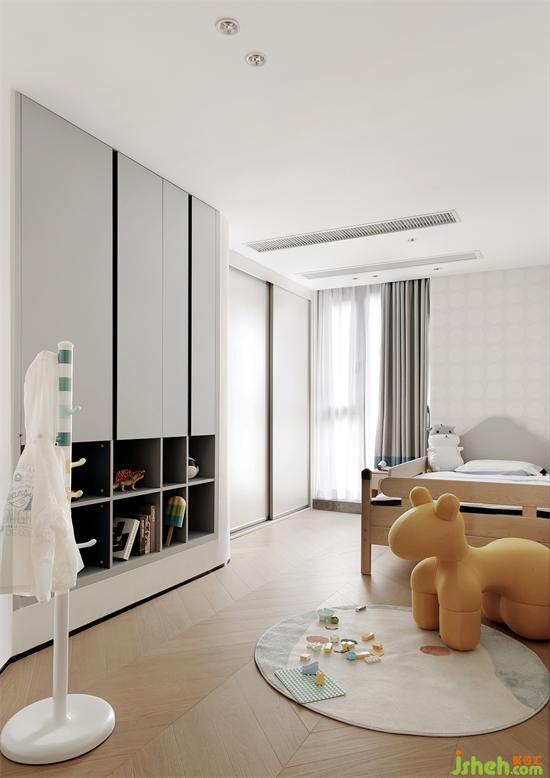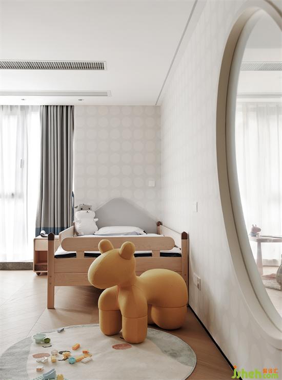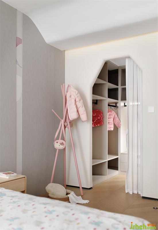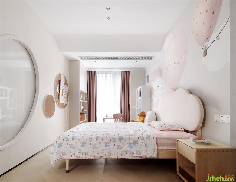 小孩们的生活不是一成不变,家具摆放也时常发生变化,深圳家装设计通过淡淡的粉和灰色调、软装、墙纸的搭配来体现一些儿童化属性,不做过度的装饰限制小孩房未来发展的可能性。
