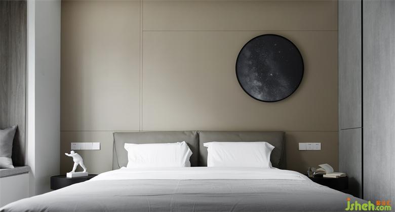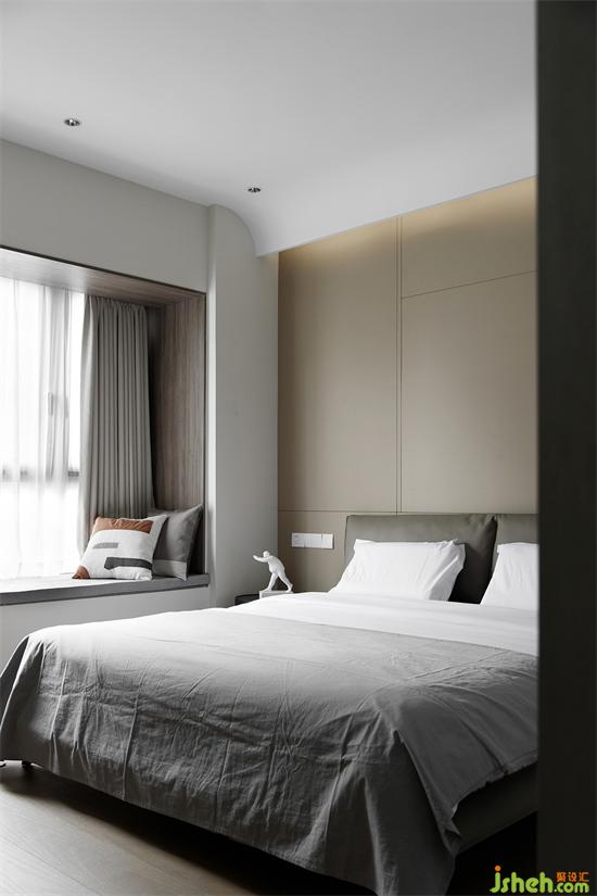 主卧以灰咖为主基调,中性色来打造舒适柔和的睡眠环境,加以线条感进一步刻画细节轮廓,整个卧室空间安静、平和。